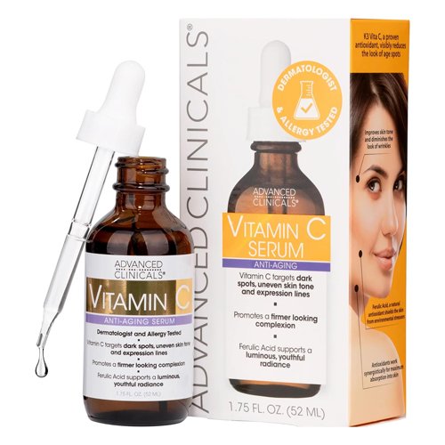 HIGHLY CONCENTRATED VITAMIN C FACE SERUM – Visibly reduces the look of age spots in just 4 weeks. K3 Vitamin C Lifts skin tone and reduces the look of pigmentation for healthier looking complexion. The blend of ingredients makes this the best serum to get rid of age spots, sun spots, dark spots, scars, and more! INSTANT RESULTS- Instantly restores radiance and hydrates dry skin. Within 4 weeks reduce the look of age spots and firm delicate skin areas. Improves skin tones and diminishes the look of wrinkles. Encapsulated peptides target imperfections for a more uniform looking skin tone. POWERFUL ANTI-AGING PROPERTIES: Palmitoyl Oligopeptide is known to increase collagen production while reducing lines and wrinkles, improving skin texture, firming skin around the eye, brightening skin tone, and moisturizing the skin. And if that is not enough, Glycolic Acid is very effective in diminishing stubborn expression lines, acne, and oiliness. LARGE SPA SIZE BOTTLE- 1.75oz bottle will last you months. Just a few drops of this serum will immediately moisturize your skin and help eliminate unwanted age spots on your face or on your hands. Safe to use on neck and dcollet. Can be used on all skin types. Dry skin, oily skin or normal skin.