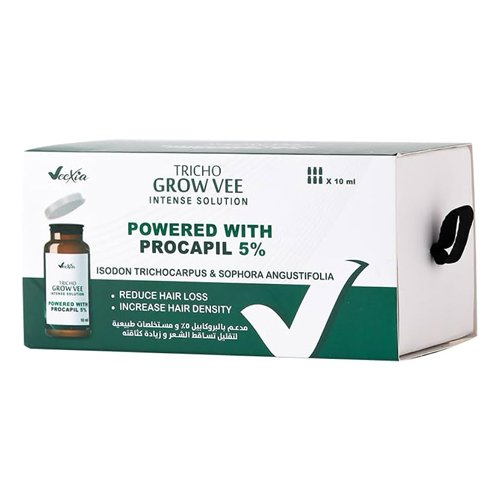 Regrow your hair with Tricho Grow Vee ampoules for hair loss, the ultimate daily go to treatment for all hair types. Powered by advanced Japanese technology with concentrated Procapil 5%, Biotin, and Caffeine, this powerful, non-greasy, and easy to use Ampoules strengthens your hair follicles, protects it against damage, and creates the optimal environment for healthy hair growth